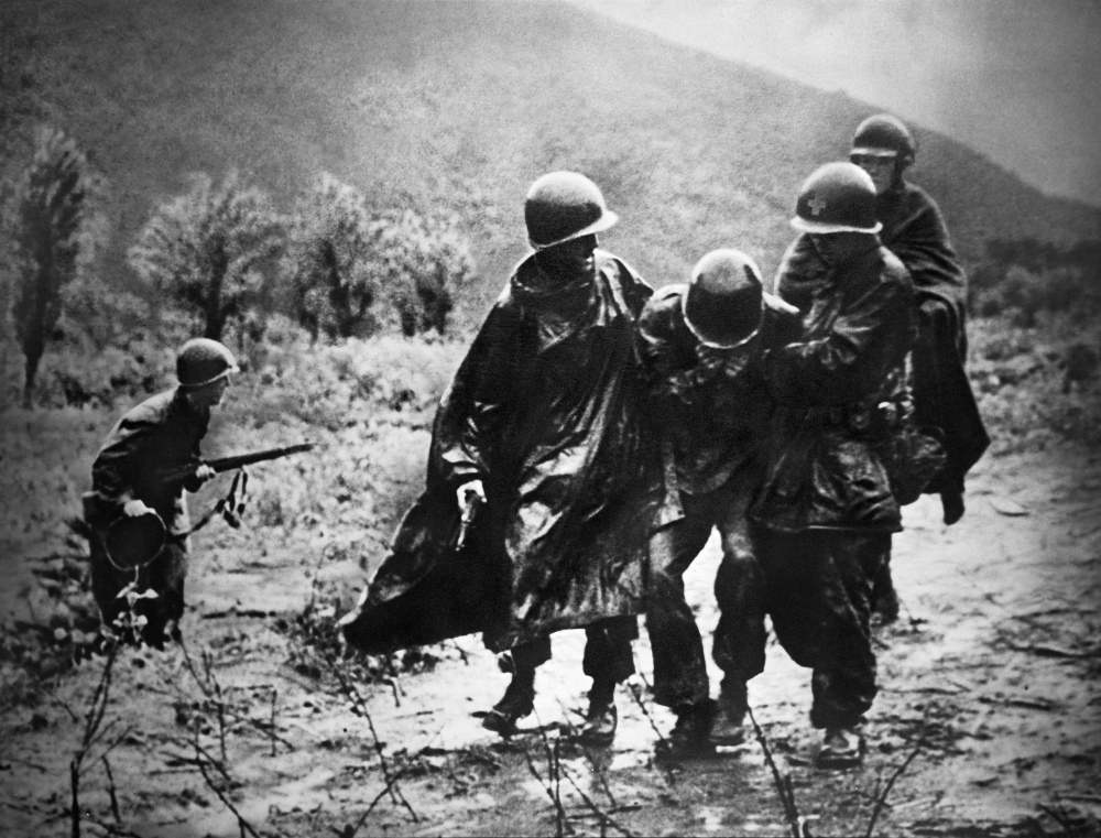 In this last photo, he’s on the right helping a wounded man: